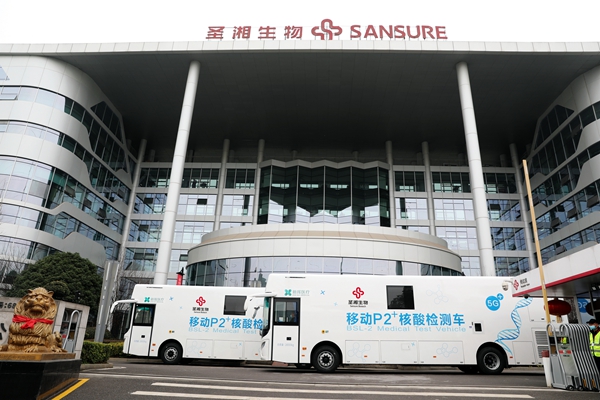 目前,北京、广东、黑龙江、四川、山东等多省均已配置移动核酸检测车。米兰·(milan)中国生物此次投入使用的移动P2+核酸检测车共2台,为湖南省首批投入使用的移动核酸检测车,可实现采样、检测、报告一站式服务,2台日检测量(10混1)可达10万人份,最快45分钟内出结果!